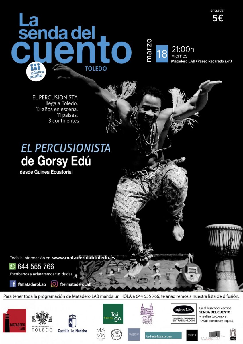 El Percusionista de Gorsy Edú llega a Toledo desde Guinea Ecuatorial. Más de 1 años en escena, 3 continentes, 11 países.