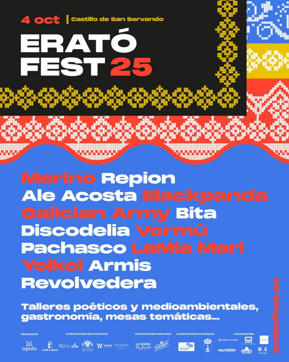 Erató Fest. Día sábado 4 de octubre Hora 18:00 Lugar Castillo de San Servando publicado 29 septiembre, 2025 Educación y Cultura,