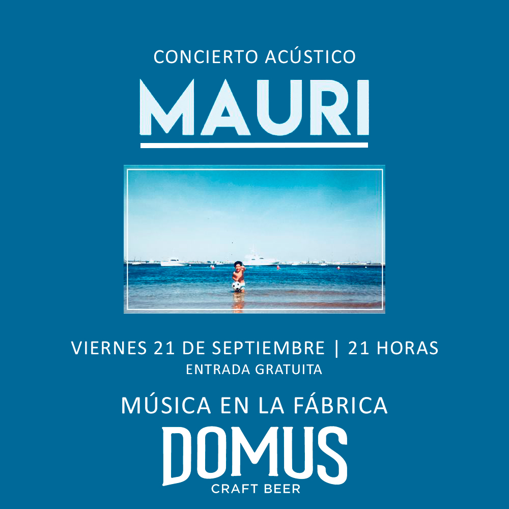 Música en la fábrica: Mauri Día viernes 21 de septiembre Hora 21:00 Lugar Fábrica Domus Precio Gratuita Organiza Cervezas Domus publicado 13 septiembre, 2018 Educación y Cultura,