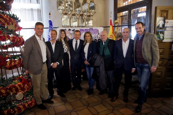 La alcaldesa comparte con los socios de la peña madridista ‘El Buitre’ y Emilio Butragueño la celebración de su 33 aniversario
