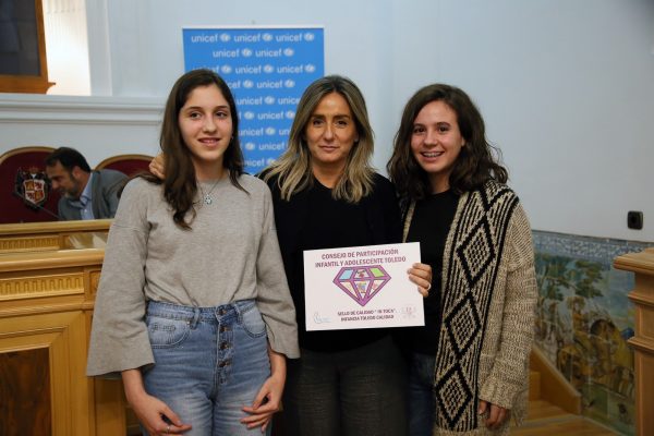 La alcaldesa reitera su compromiso con los niños y niñas de Toledo en la colocación de la placa “Ciudad Amiga de la Infancia”