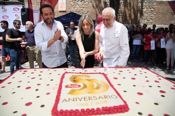 Milagros Tolón celebra con el Grupo Tello su 50 aniversario en el Campeonato Internacional Solidario de Cortadores de Jamón celebrado este sábado en Toledo