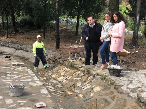 La alcaldesa visita las obras de consolidación del talud de la bajada de Santa Ana que da acceso a la senda ecológica
