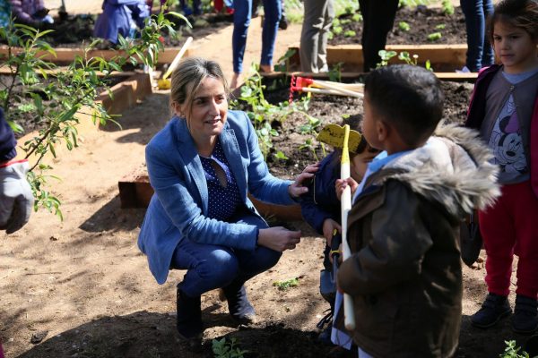 Milagros Tolón comparte con escolares del Colegio Público ‘Garcilaso de la Vega’ la primera plantación de su nuevo huerto