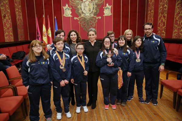 Milagros Tolón recibe en el Ayuntamiento al equipo de natación de Down Toledo tras lograr 9 medallas en el Campeonato de España