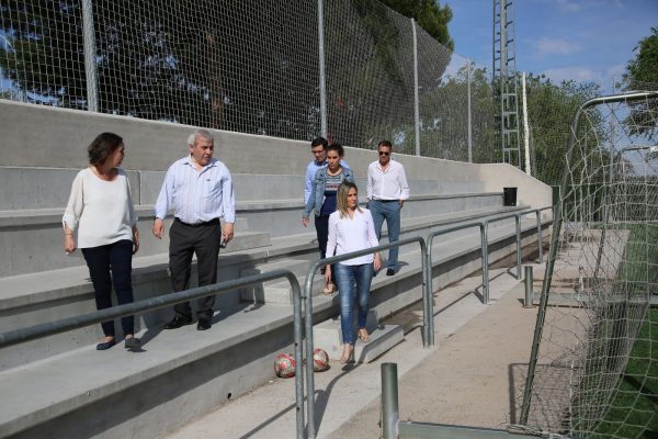 La alcaldesa visita el nuevo graderío del campo de fútbol anexo y anuncia la mejora de la entrada al complejo del Salto del Caballo