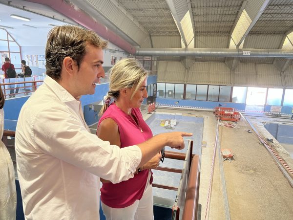 La alcaldesa visita las obras de reforma de la piscina cubierta del Salto del Caballo que modernizarán este centro deportivo