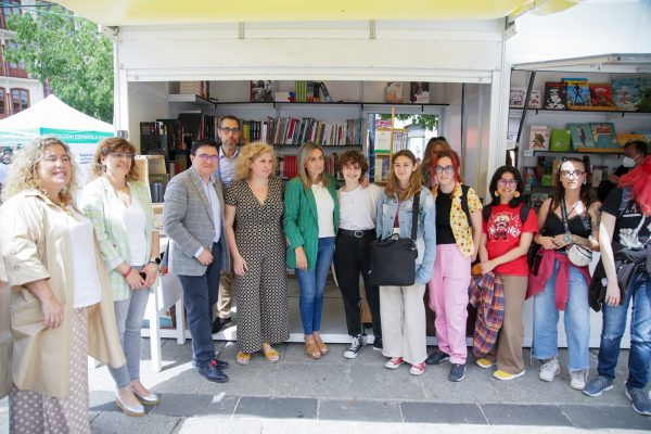 Milagros Tolón felicita a Paula Sánchez, alumna de la Escuela de Arte de Toledo y ganadora del concurso de carteles de la Feria del Libro