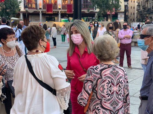 La alcaldesa realiza el recorrido de los espacios florales que engalanan el Casco con motivo de la celebración del Corpus