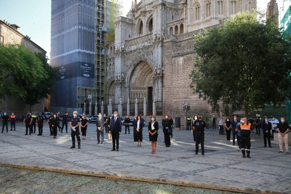La Corporación inicia el luto oficial por las víctimas de la Covid-19 con la arriada de banderas a media asta y un minuto de silencio