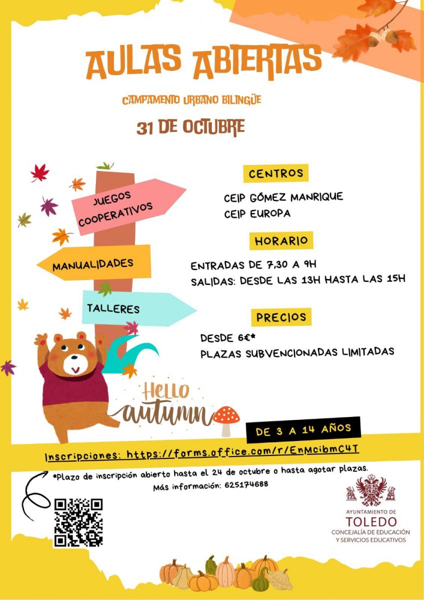 Aulas Abiertas 31 de octubre. Campamento urbano bilingüe - Ayuntamiento de Toledo