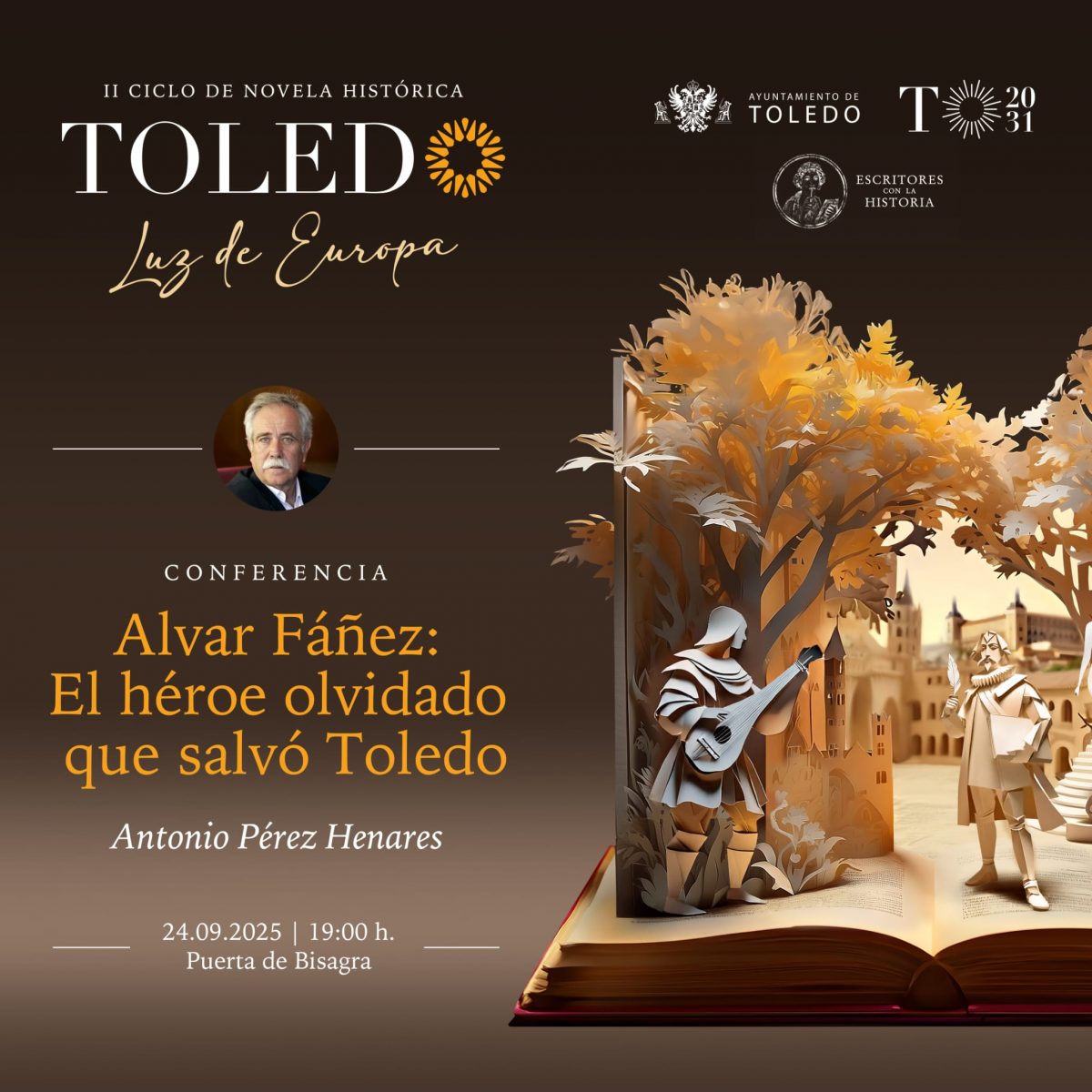 El próximo miércoles 24 de septiembre a las 19:00 horas se celebrará la cuarta conferencia del II Ciclo de Novela Histórica ‘Toledo Luz de Europa’ en la Puerta de Bisagra a cargo del escritor Antonio Pérez Henares bajo el título ‘Alvar Fáñez: el héroe olvidado que salvó Toledo’.