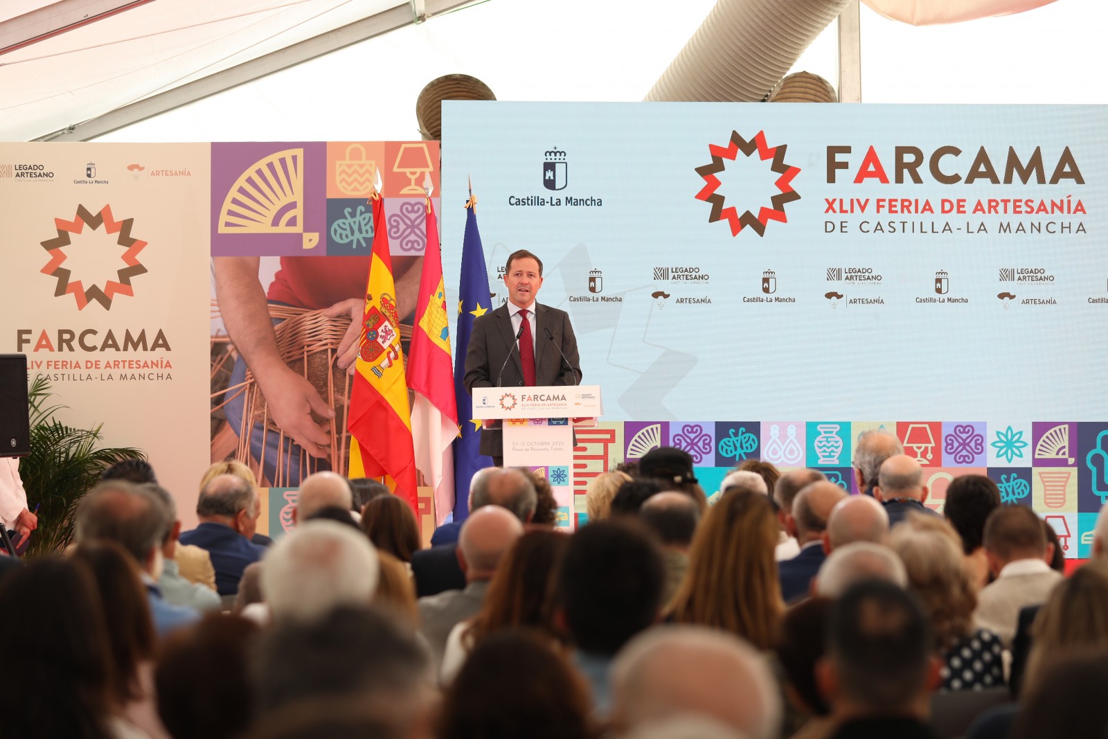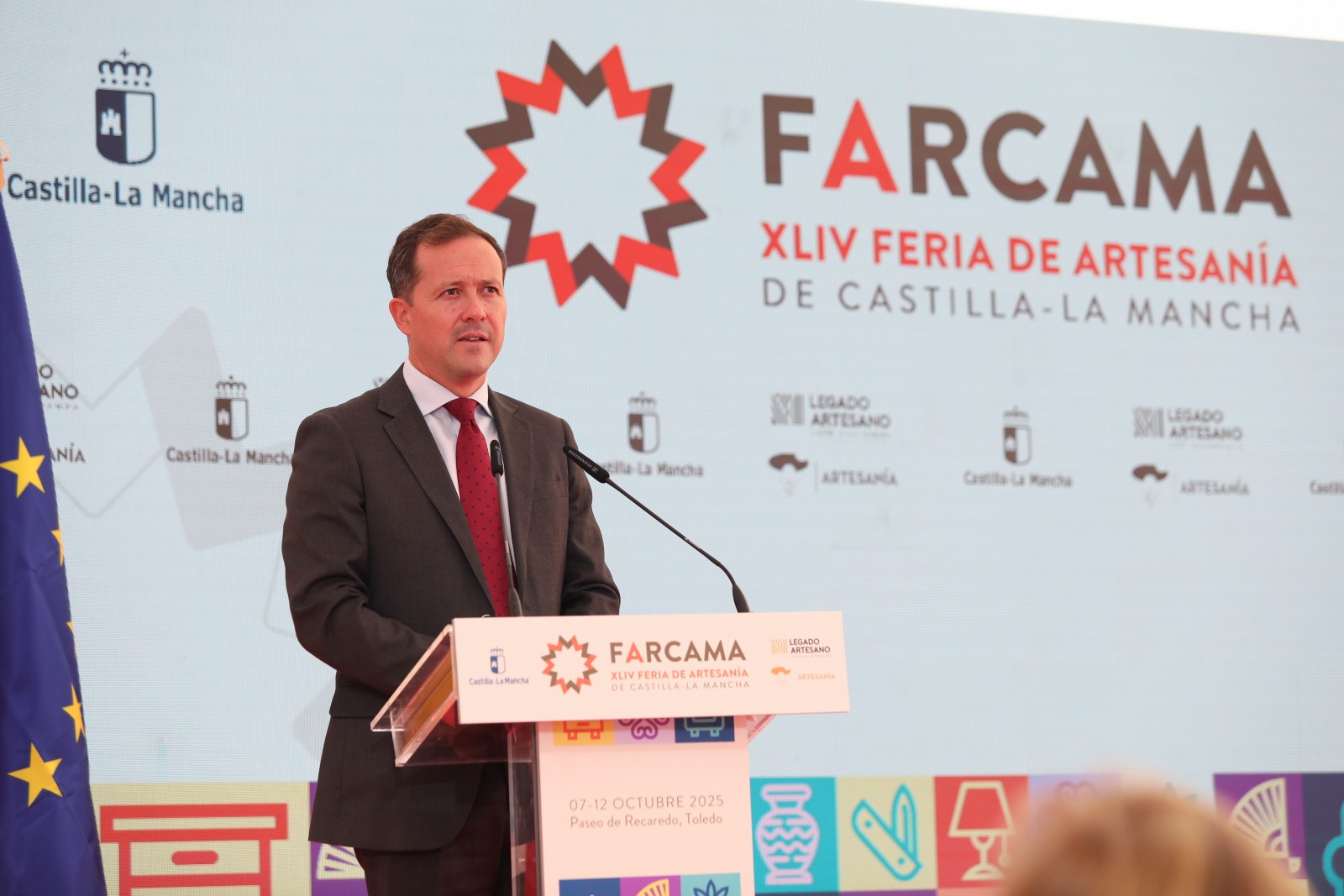 El alcalde de Toledo, Carlos Velázquez ha participado hoy en el acto de entrega de las Distinciones y Reconocimientos Artesanos de Castilla-La Mancha, celebrado en el marco de Farcama, la Feria Regional de Artesanía, donde ha felicitado a los premiados y ha destacado la importancia de “la creatividad, la tradición y la innovación que definen al sector artesano de la región”.