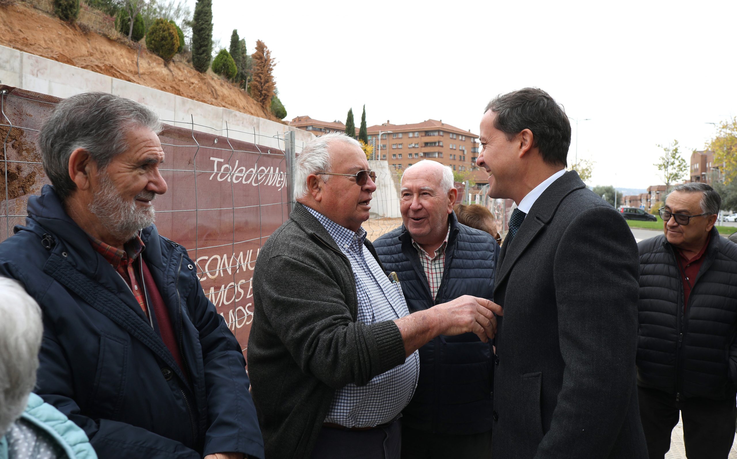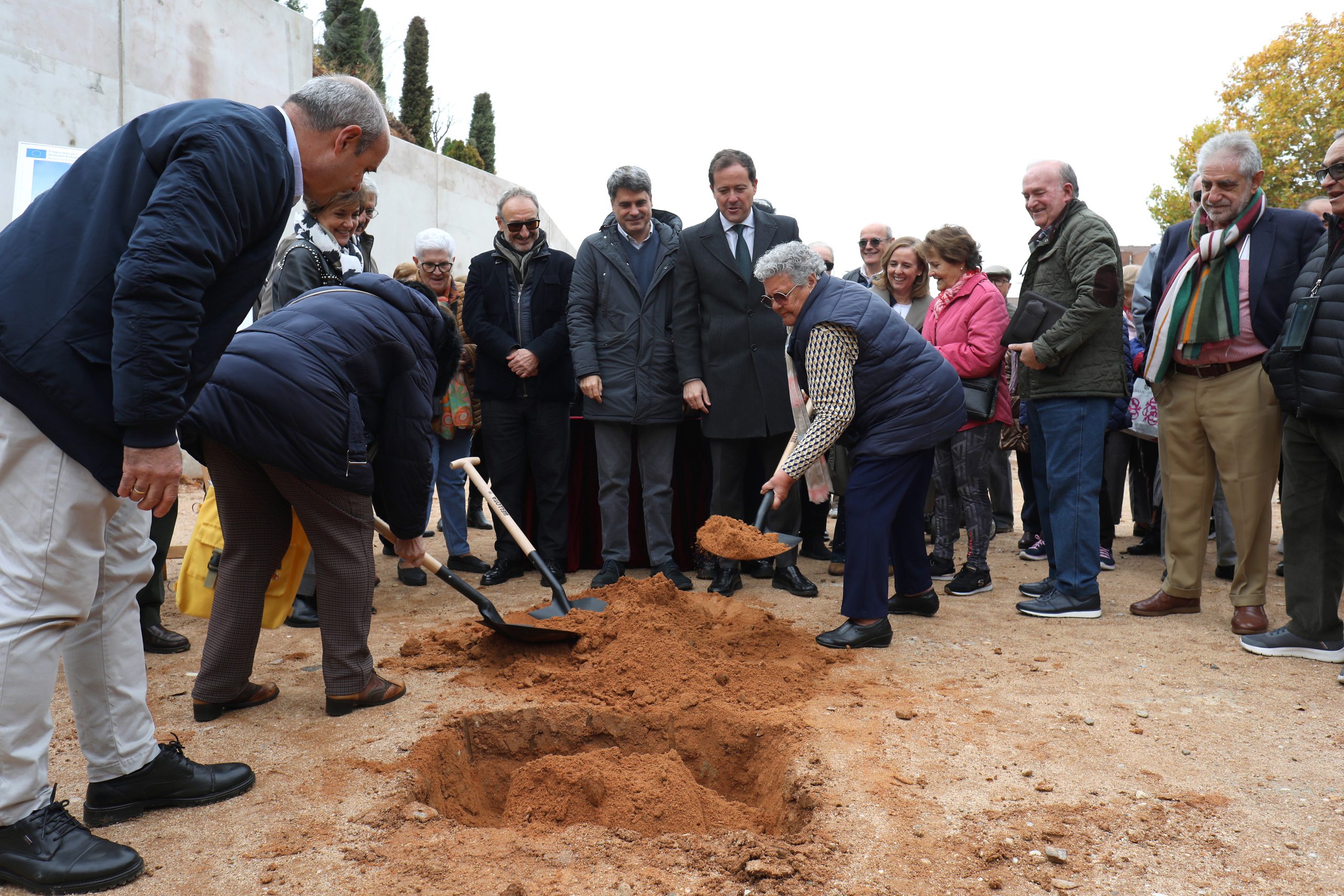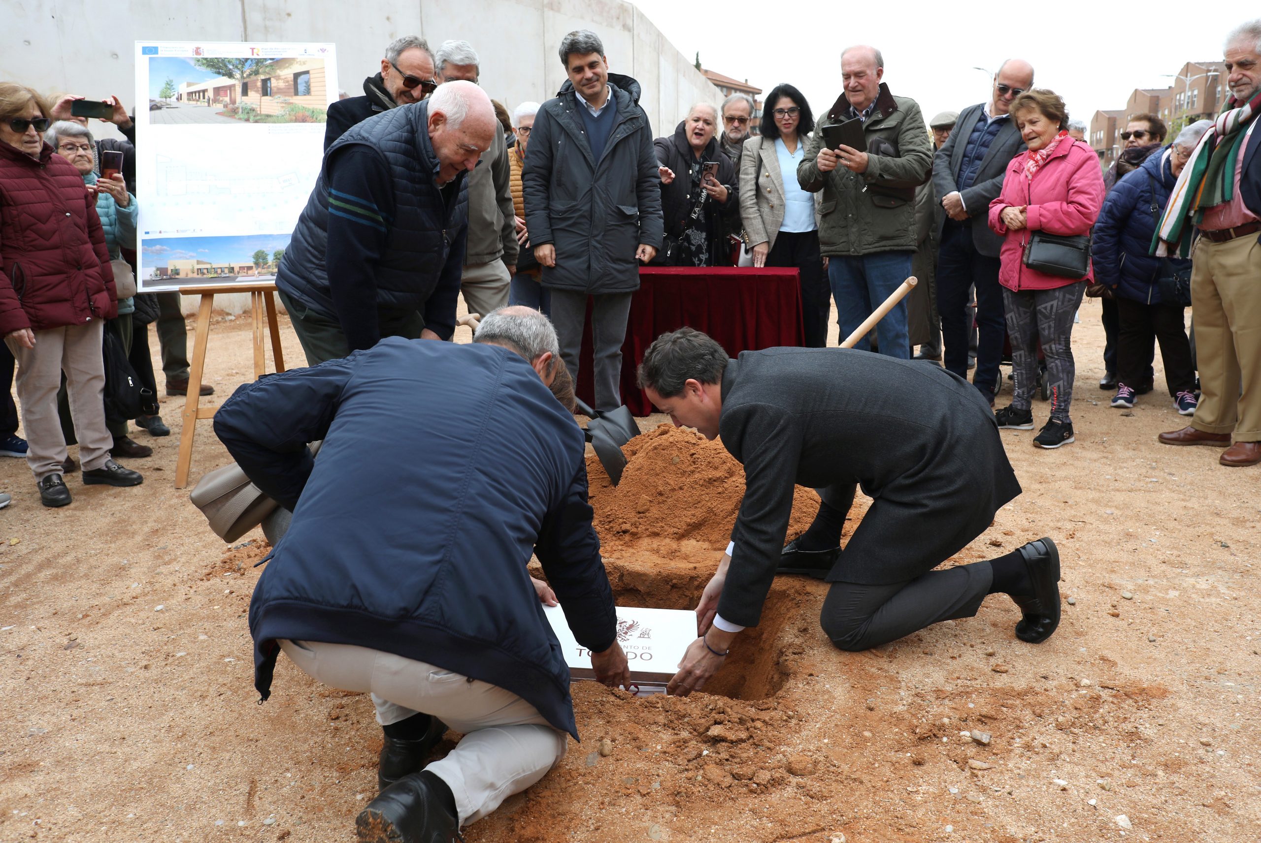 El alcalde de Toledo, Carlos Velázquez y varios concejales de la Corporación Municipal han asistido hoy al acto de colocación de la primera piedra del Centro de Mayores de Buenavista, acompañados por técnicos del proyecto, representantes de la Asociación de Vecinos ‘La Ronda de Buenavista’ y decenas de vecinos del barrio.