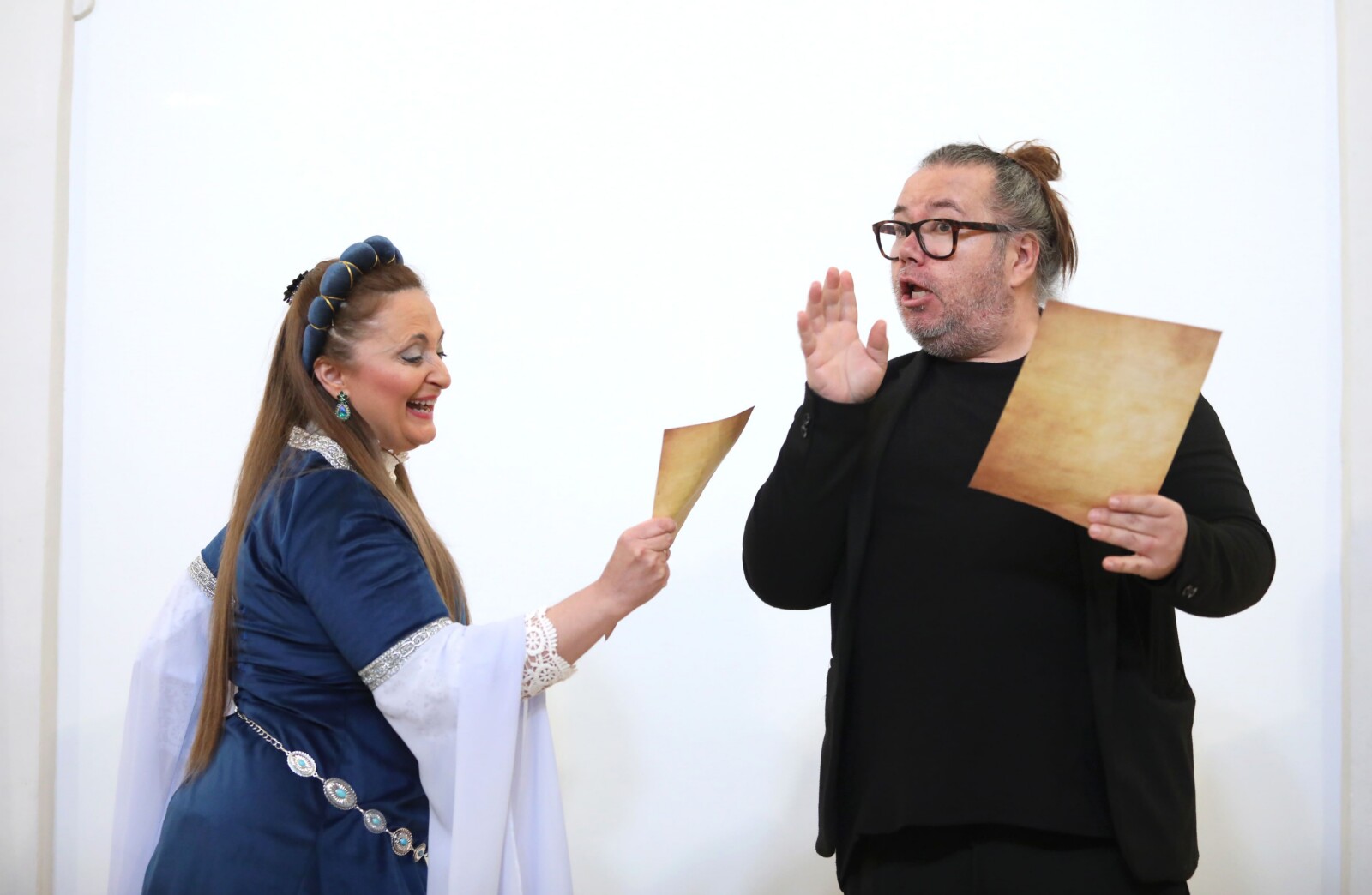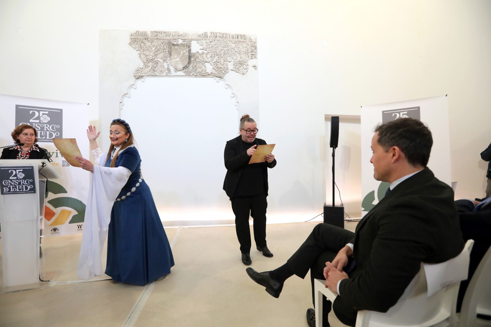 La compañía de teatro “Atenea” ha amenizado el acto con la teatralización del documento manuscrito ”Coplas”, encontrado en un mechinal del zaguán de la Iglesia del convento de Santa Clara rehabilitado por el Consorcio.