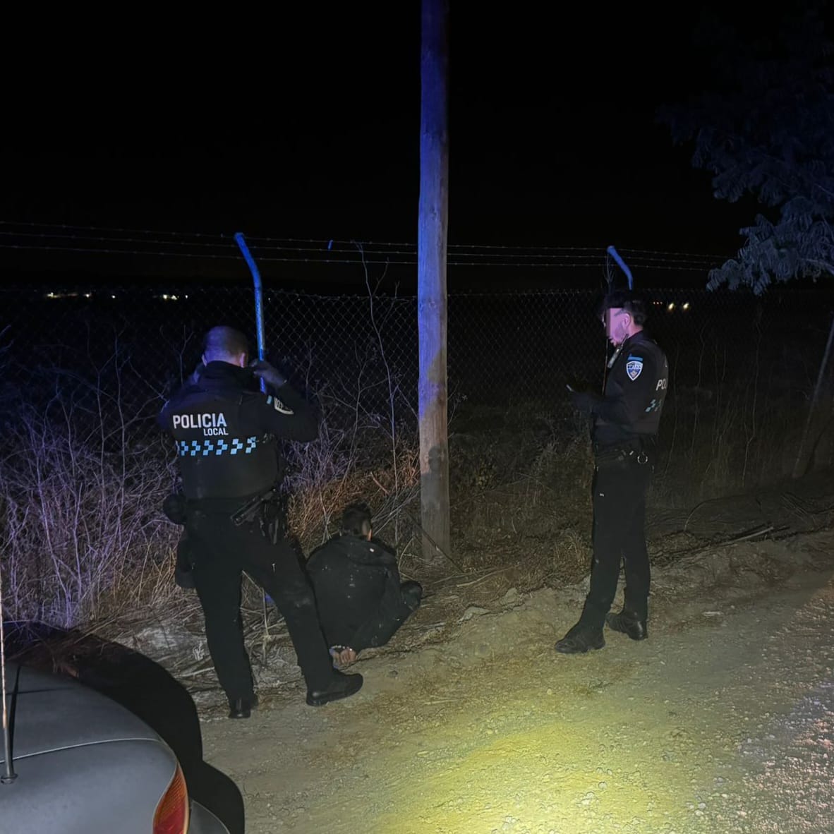 Los presuntos autores emprenden la huía, logrando detener a uno de ellos, un varón de 22 años, quien ofrecer fuerte resistencia.