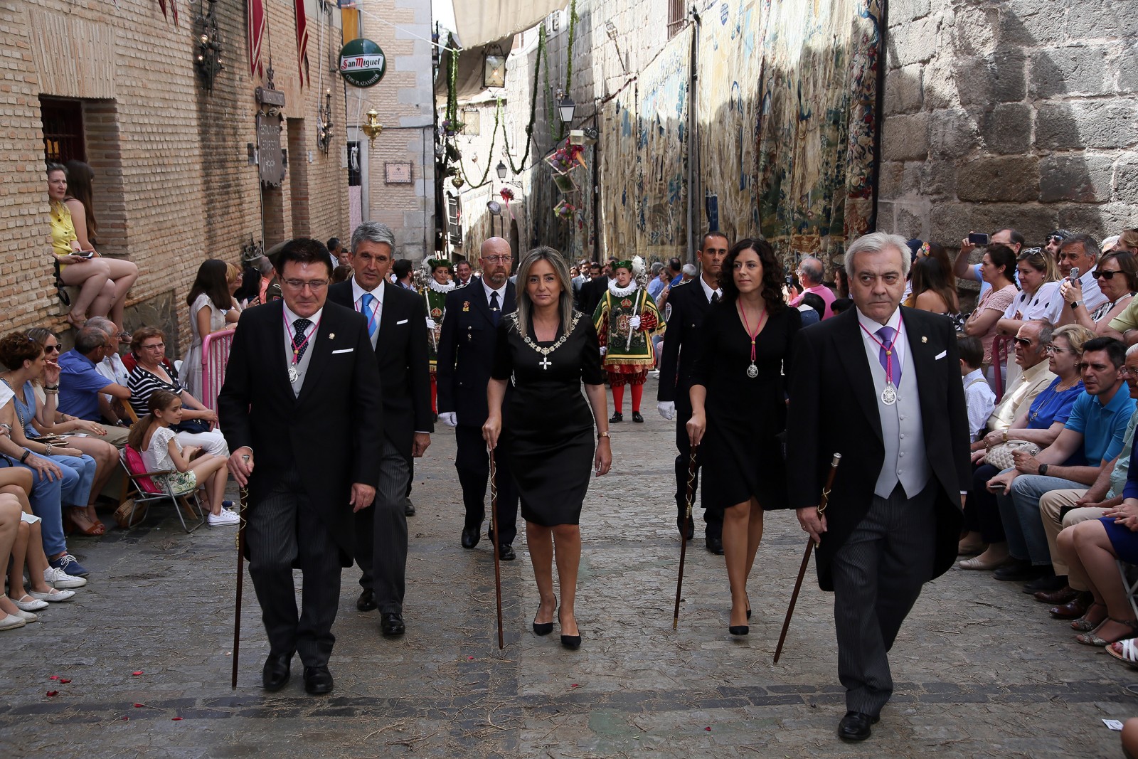 Las calles de Toledo, engalanadas para la ocasión, han acogido un año más la procesión del Corpus Christi en la que ha participado la Corporación Municipal encabezada por la alcaldesa, Milagros Tolón, quien se ha mostrado convencida de que los toledanos y toledanas y las personas que vistan la ciudad “van a disfrutar de un día tan especial”.
