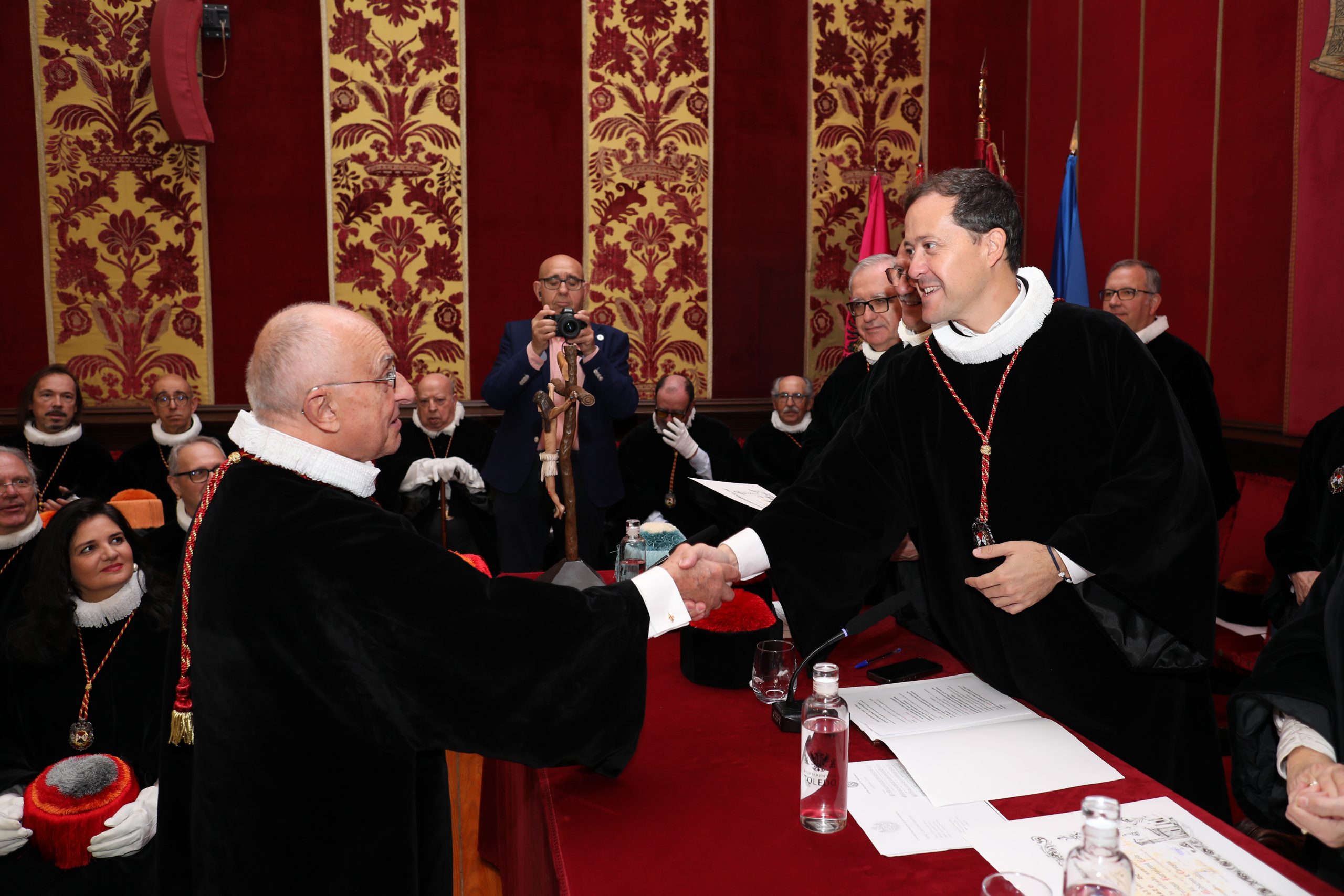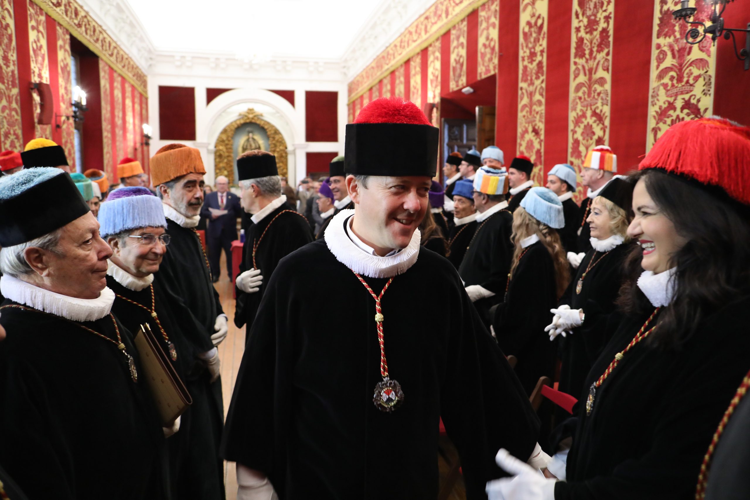 El alcalde de Toledo, Carlos Velázquez ha participado esta mañana en el cabildo de apertura del curso de la Cofradía Internacional de Investigadores celebrado en la Sala Capitular del Ayuntamiento, donde ha expresado su gratitud por el apoyo de esta Cofradía a la candidatura de Toledo como Capital Europea de la Cultura en el año 2031.