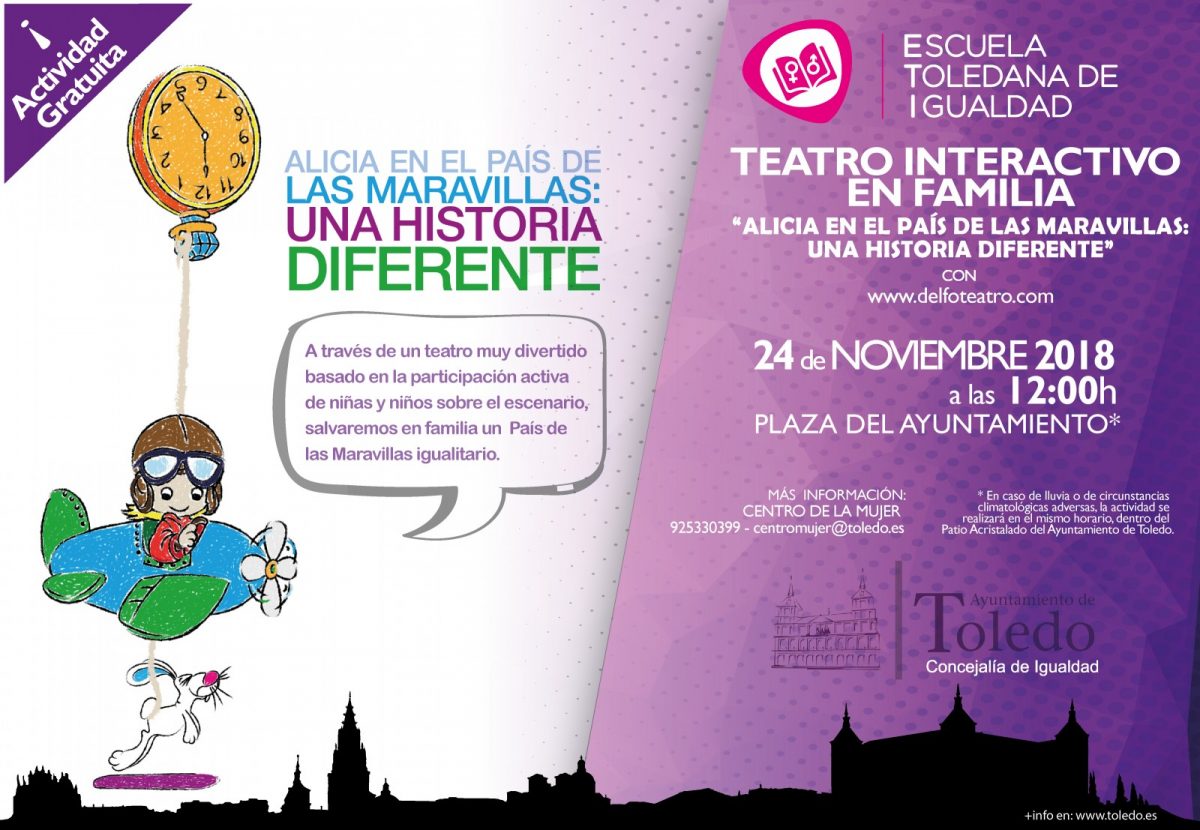 A través de una puesta en escena muy divertida, los actores y actrices recrearán una adaptación del cuento ‘Alicia en el País de las Maravillas: Una historia diferente’ en el que su protagonista descubrirá detrás del espejo de su habitación un mundo donde no existen los condicionamientos de género. Sin embargo, un malvado personaje conseguirá atravesar el espejo los niños y niñas asistentes deberán intentar mantener a salvo el país de las maravillas aportando soluciones ante “la invasión de costumbres sociales muy arraigadas en nuestra cultura”.
