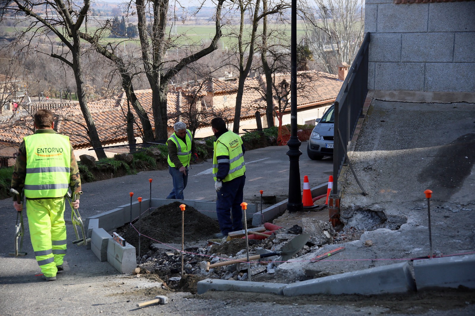La alcaldesa de Toledo, Milagros Tolón, ha visitado este martes las obras de mejora urbana de la Bajada de los Desamparados en el Casco Histórico, un proyecto que cuenta con un presupuesto de más de 120.000 euros y que como ha explicado la alcaldesa dotará al barrio de dos áreas de aparcamiento, con mejoras en la calzada y en el acerado ampliando la zona peatonal en esta vía que conecta las calles Gerardo Lobo con Azacanes y la plaza de la Puerta Nueva.