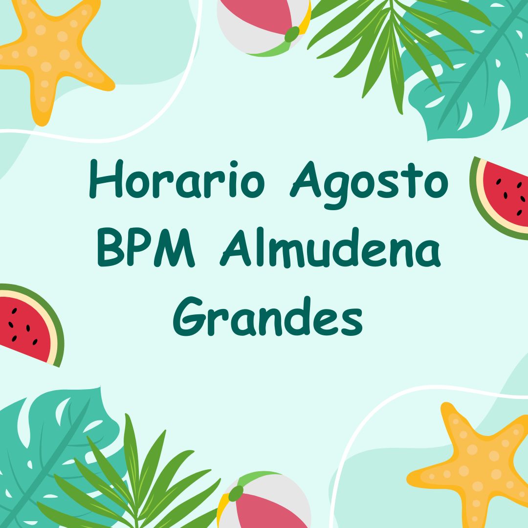 📢Os recordamos nuestro horario para el mes de Agosto en la BPM Almudena Grandes. publicado 31 julio, 2025 Biblioteca Municipal Almudena Grandes,