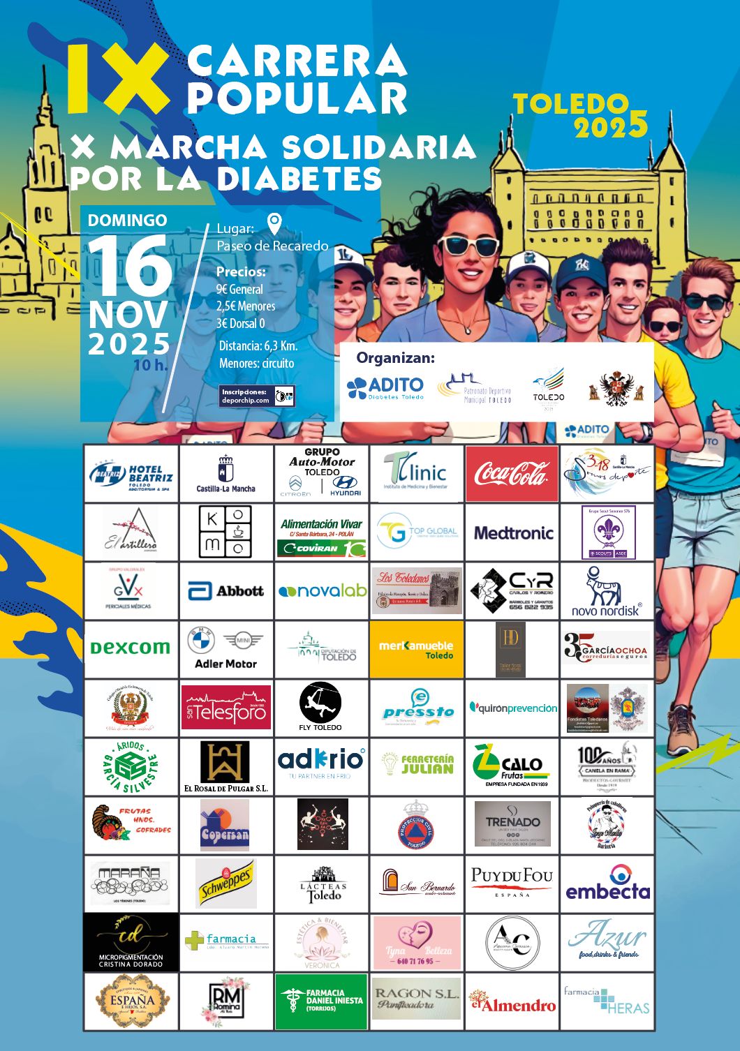 El domingo 16 de noviembre tendrá lugar la IX Carrera Popular y la X Marcha por la Diabetes, organizadas por la Asociación de Diabéticos de Toledo (ADITO) con la colaboración del Ayuntamiento.