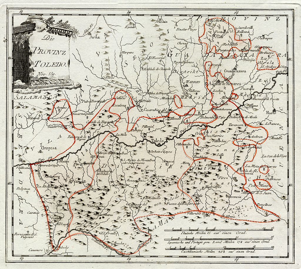 Mapa de la provincia de Toledo titulado “Die provinz Toledo Nro. 559” y realizado por Franz Johann Joseph von Reilly. Escala: [ca. 1:650.000].