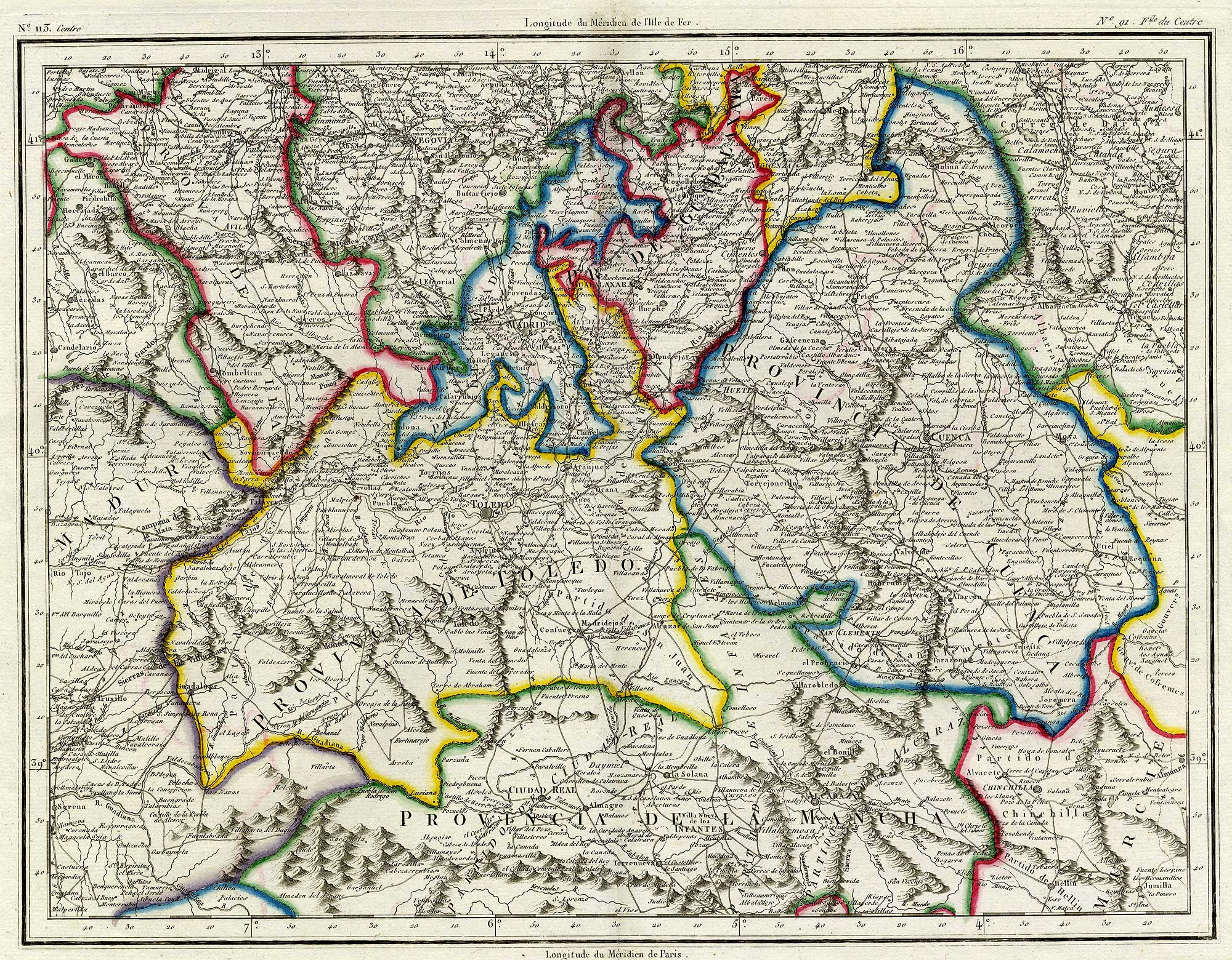 Mapa de las provincias de Toledo, Madrid, Cuenca y Guadalajara y parte de las de Extremadura, Ávila, Segovia, Teruel, Murcia y La Mancha de autor desconocido, y publicado en un libro francés.