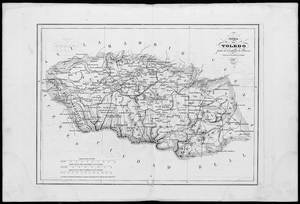 Mapa de la provincia de Toledo, parte de Castilla la Nueva, grabado por R. Alabern y E. Mabon, en 1847.