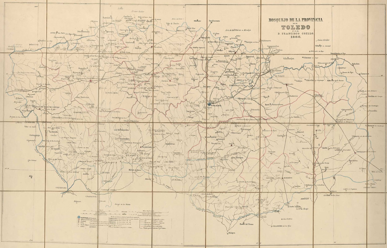Mapa titulado “Bosquejo de la Provincia de Toledo” realizado por Francisco Coello en 1866. [Escala 1 / 200.000].