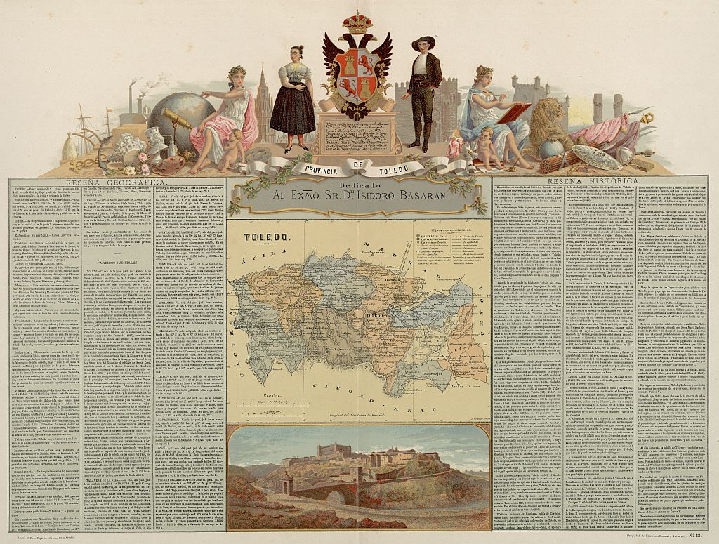 Mapa de la provincia de Toledo con una reseña geográfica e histórica de la misma.