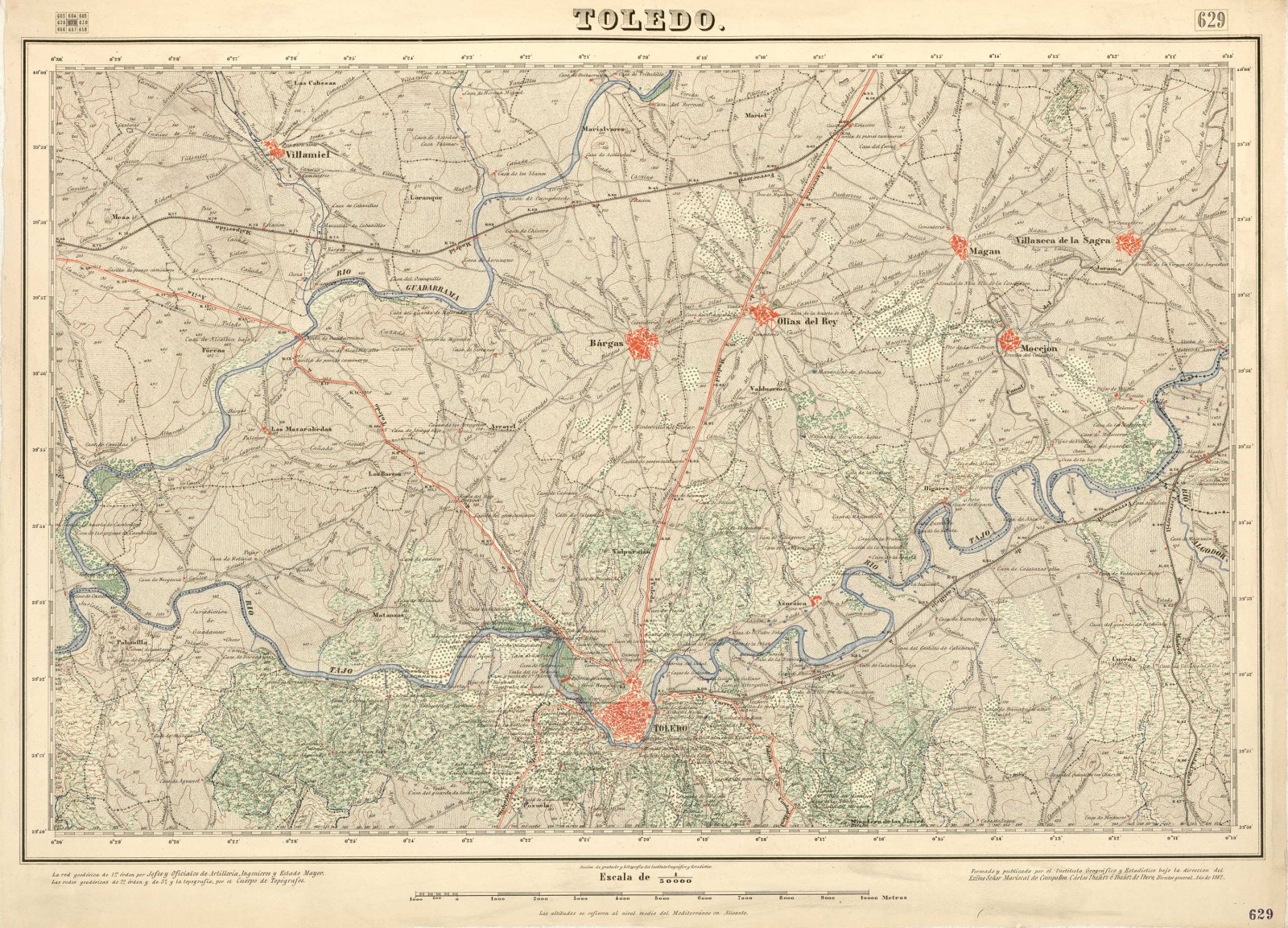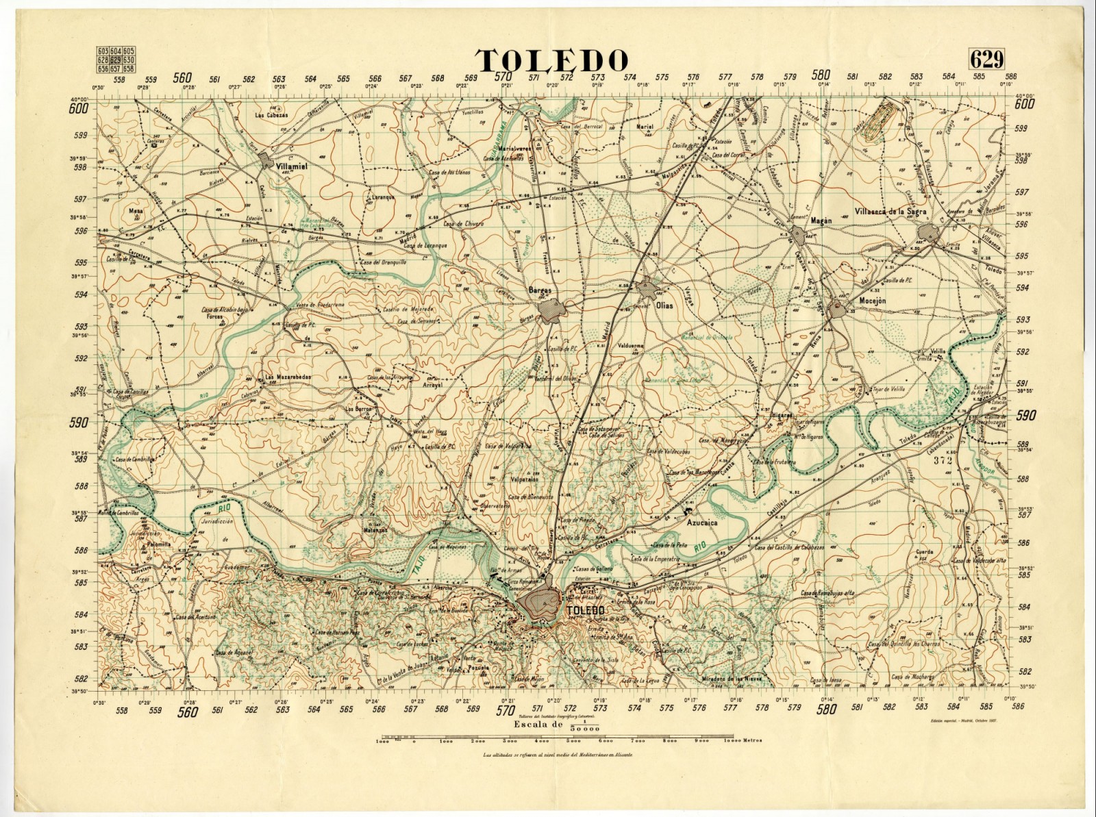Hoja núm. 629 del Mapa Topográfico Nacional titulada “Toledo” publicada en Madrid, por los Talleres del Instituto Geográfico y Catastral en 1937. [Escala 1:50.000].
