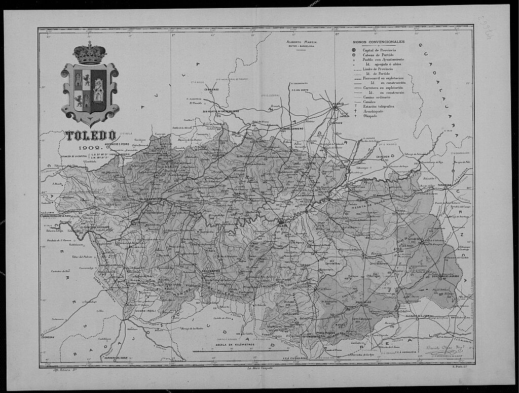 Mapa de la provincia de Toledo realizado por el ingeniero Benito Chías en 1902.