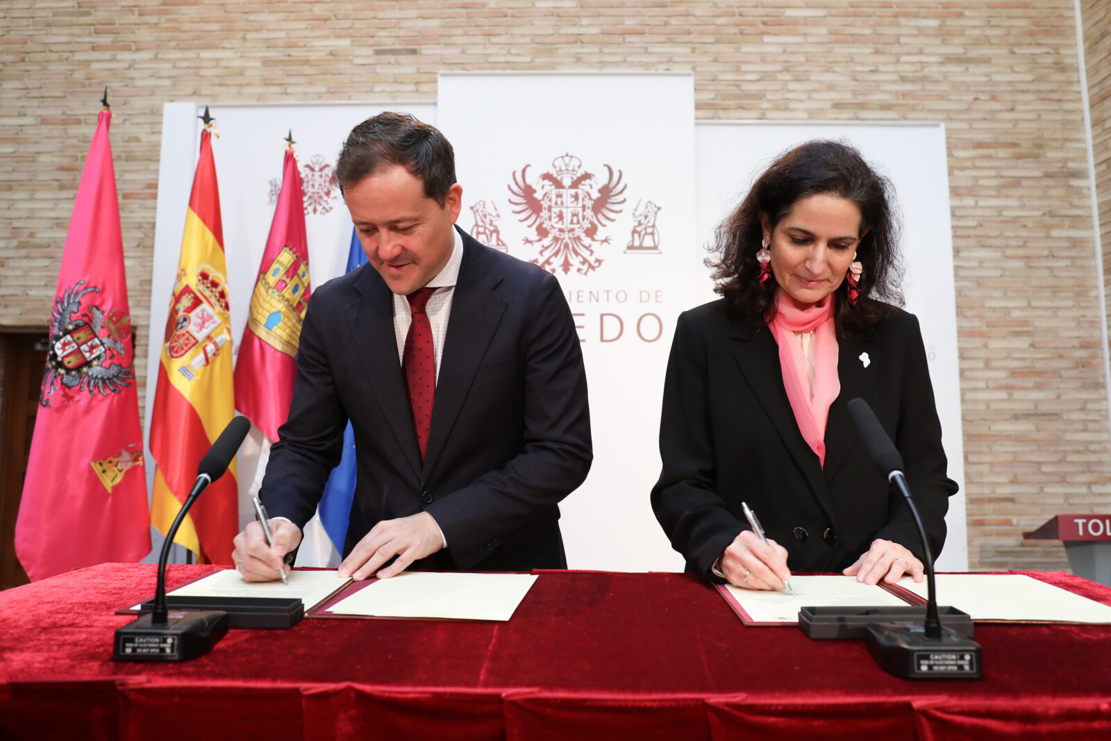 El alcalde de Toledo, Carlos Velázquez ha firmado hoy con la directora general de la Fundación Ortega-Marañón un convenio de colaboración destinado a reforzar la proyección internacional de la ciudad, fomentar el turismo idiomático y estrechar la cooperación educativa y cultural entre ambas instituciones tras 43 años de trayectoria de la Fundación en la capital regional “y dar un paso cualitativo al integrar a los estudiantes en la gestión y el día a día de la ciudad”.