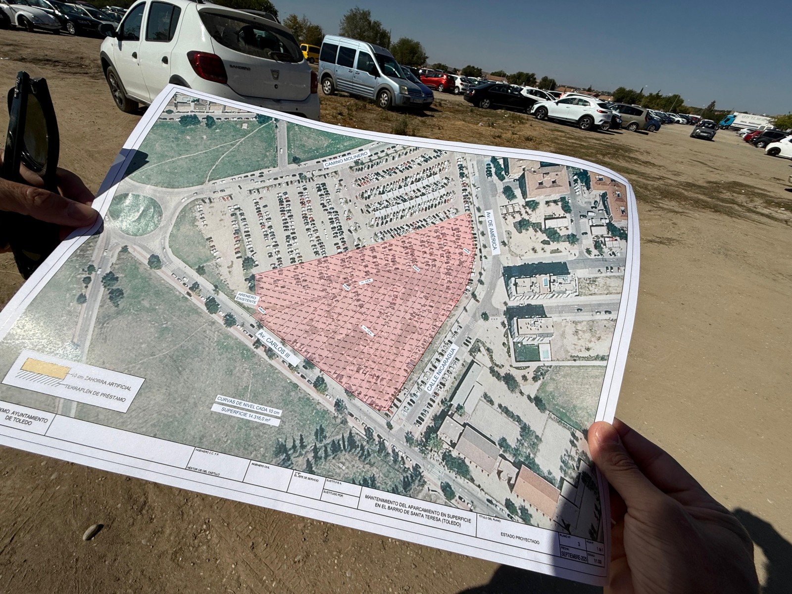 El objetivo de esta obra es mejorar la situación actual del aparcamiento en superficie del barrio de Santa Teresa, mediante la adecuación de pendientes para la evacuación de las aguas superficiales y mejorar el firme actual extendiendo una capa de zahorra artificial de 10 centímetros. La inversión asciende a 47.777,80 € y tiene un plazo de ejecución de dos meses.
