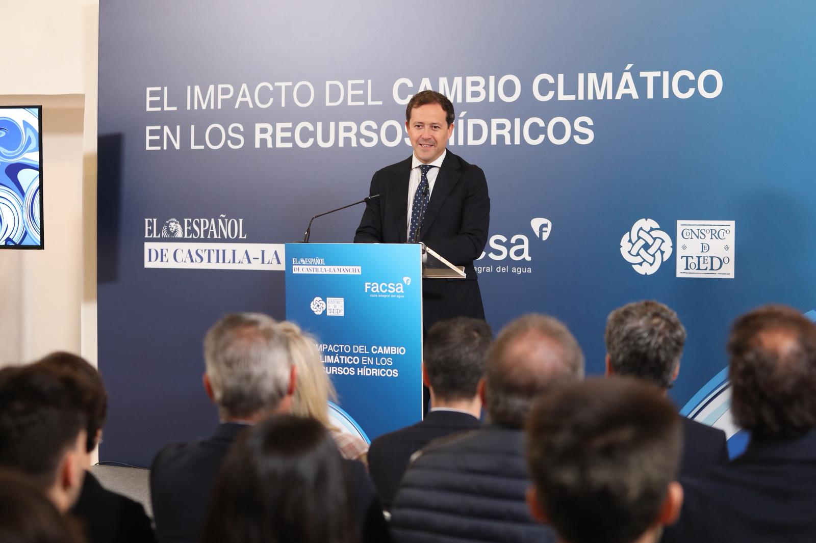 El alcalde de Toledo, Carlos Velázquez, ha participado hoy en la jornada ‘El impacto del cambio climático en los recursos hídricos’ organizada por El Español Castilla-La Mancha, FACSA y el Consorcio que se ha celebrado en el Salón Rico.