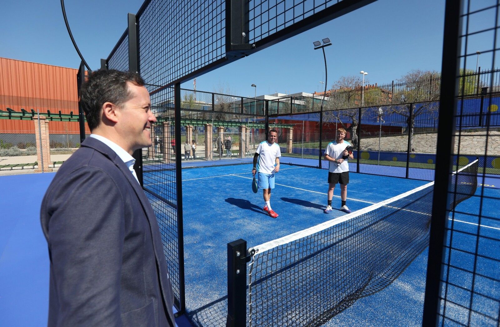El alcalde de Toledo, Carlos Velázquez, y el concejal del Río Tajo, Medioambiente y Deportes, Rubén Lozano, han inaugurado hoy la nueva pista de pádel de la Escuela Central de Educacion Física, una actuación que forma parte del plan municipal de mejora y recuperación de instalaciones deportivas.