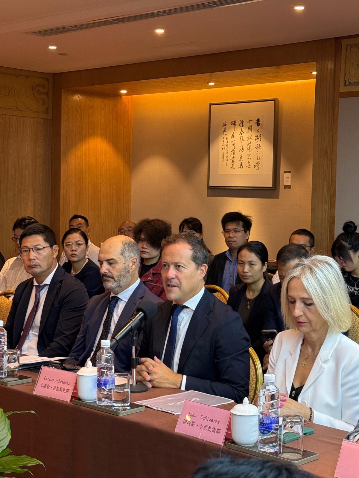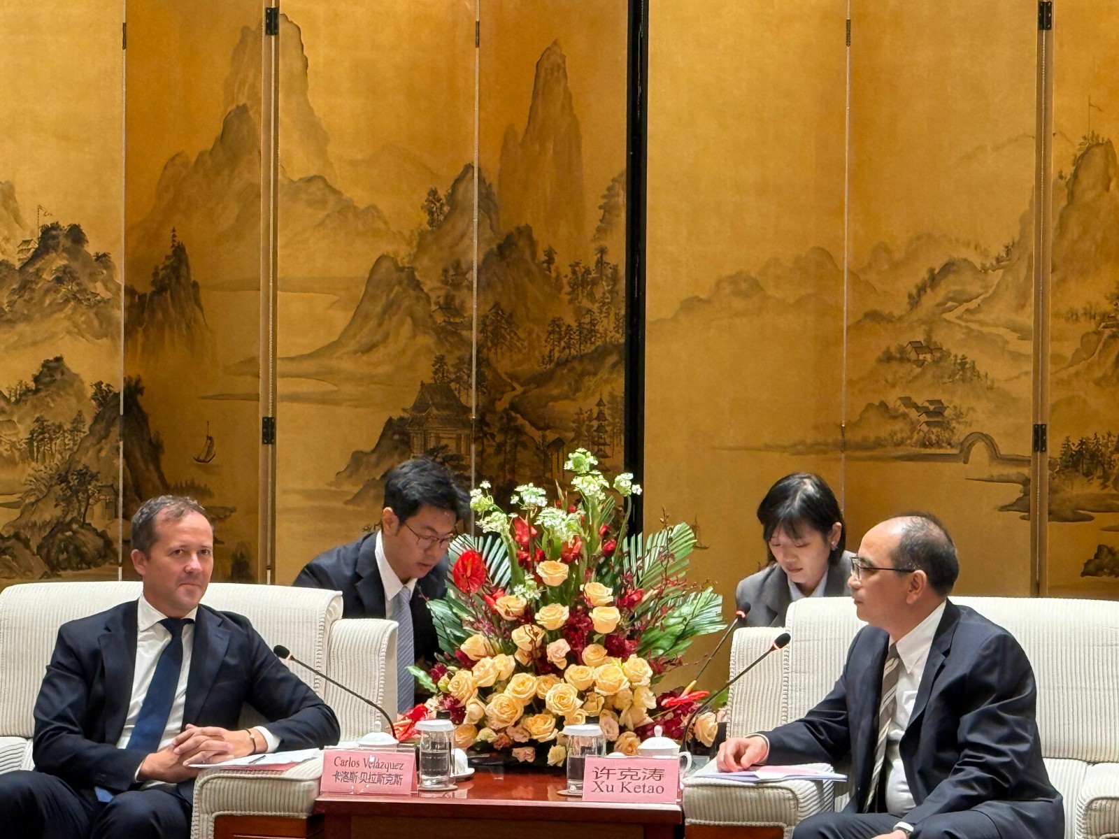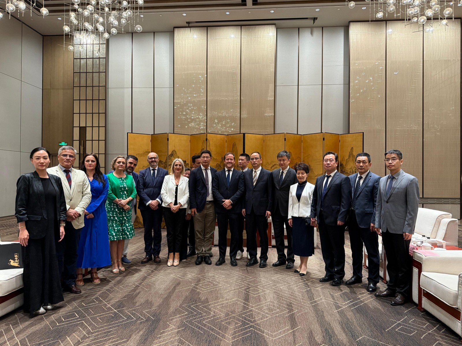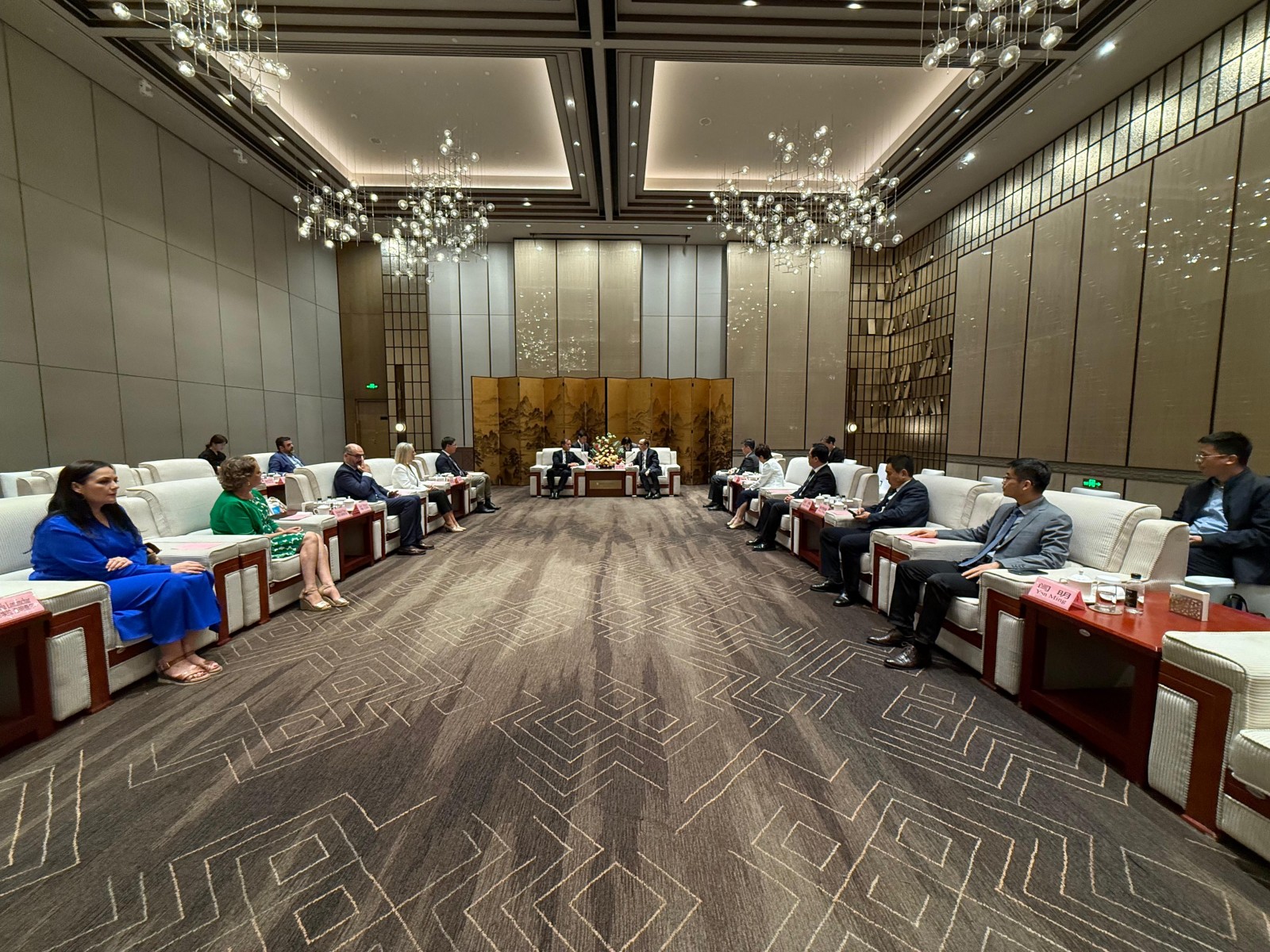 El alcalde de Toledo, Carlos Velázquez, el presidente de FEDETO, Javier de Antonio Arribas y el resto de la delegación toledana han mantenido una reunión con el vicedirector general de Exteriores de Xi’an, Zhang Rui y empresarios de la zona.